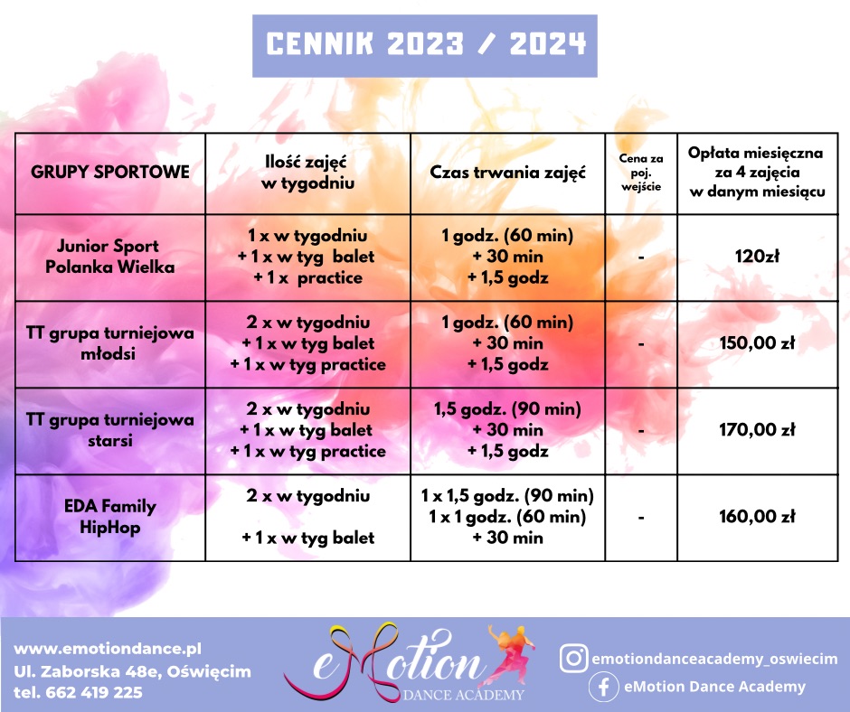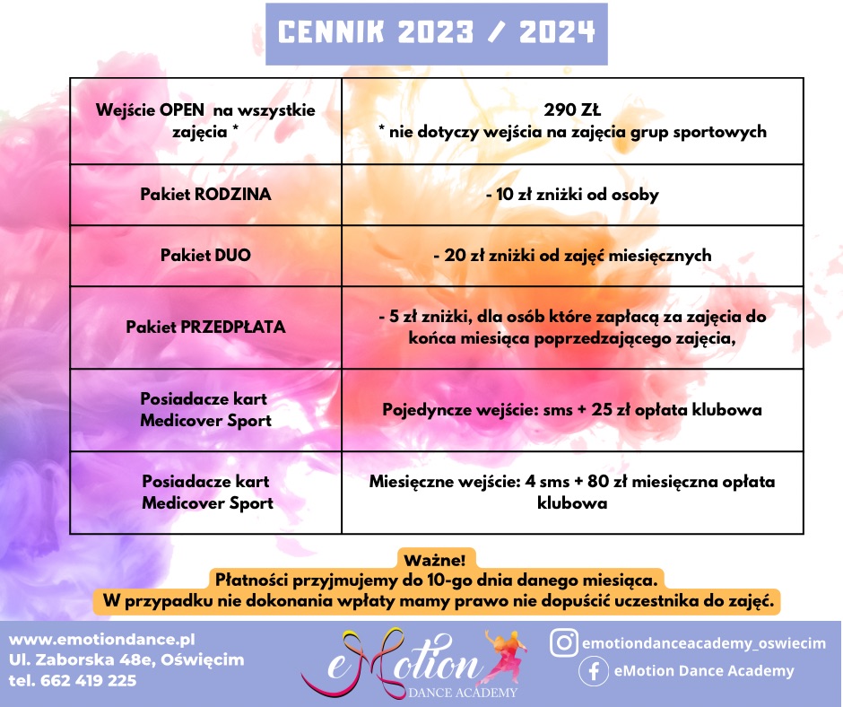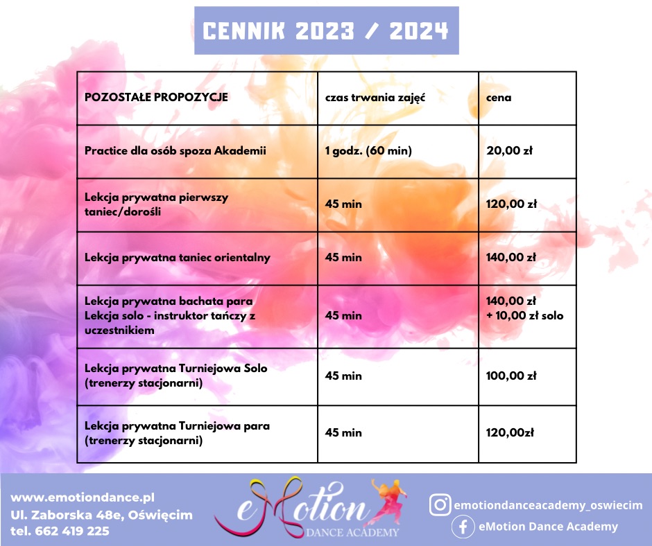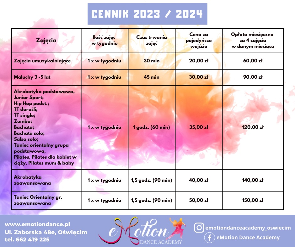 • Cennik zajęć