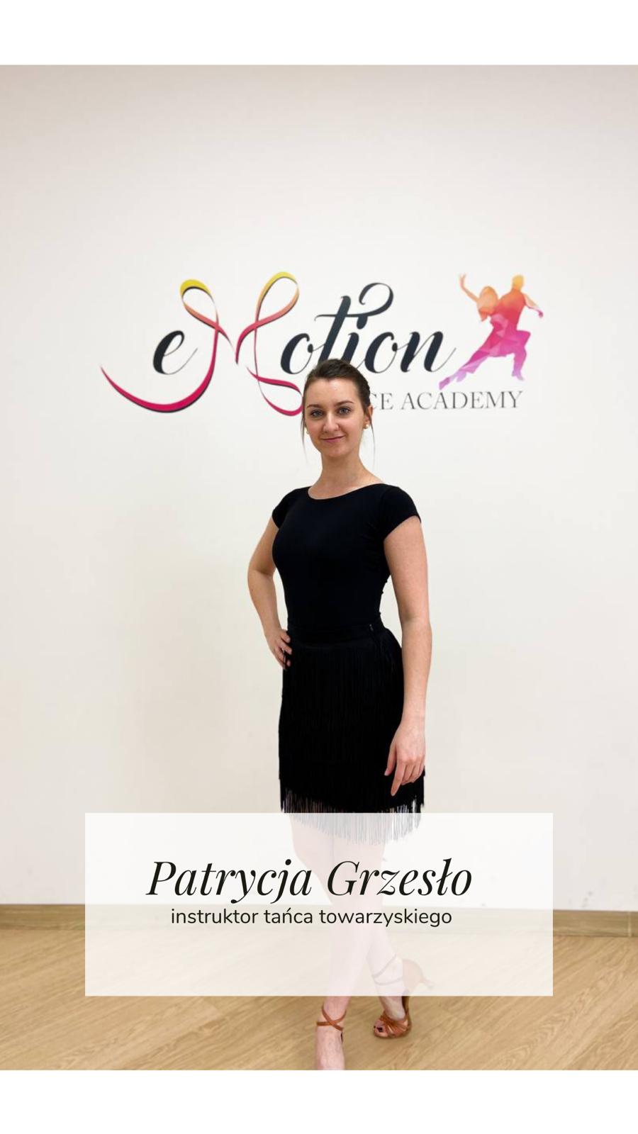 Cześć, jestem Patrycja. Taniec towarzyszy mi od dziecka. Przez 8 lat trenowałam taniec nowoczesny i cheerleaders. Największy sukces osiągnęłam w 2017 roku na Mistrzostwach Polski Cheerleaders zdobywając 3 miejsce w duecie. Od niedawna zajmuje się tańcem towarzyskim. Biorę udział w turniejach solo. Na swoim koncie mam już kilka osiągnięć w tej dyscyplinie. Oprócz tego ciągle pogłębiam swoją wiedzę i umiejętności taneczne.